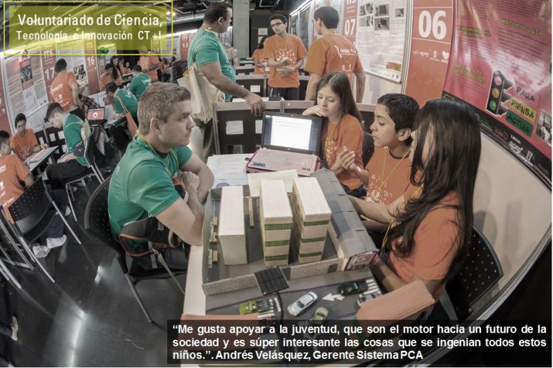 El Voluntariado de Ciencia, Tecnología e Innovación moviliza el capital social del sector privado y académico a través de actividades de transferencia de conocimiento que contribuyen al fortalecimiento de las competencias científicas, tecnológicas y ciudadanas, en estudiantes de la educación básica y media de la ciudad de Medellín y Antioquia que participan en la Feria de Ciencia, Tecnología e Innovación –Feria CT+I.