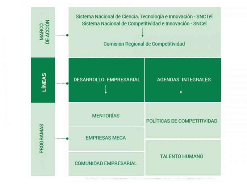 Contribuye al fortalecimiento de la competitividad regional apoyando las agendas integrales que faciliten la formación pertinente del talento humano y el desarrollo de políticas públicas de competitividad.