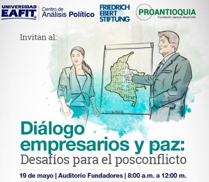 El encuentro hace parte del interés del empresariado antioqueño en apoyar la salida negociada del conflicto y es organizado por el Centro de Análisis Político de Eafit, la Escuela de Humanidades y Eafit Bogotá, en compañía con la Fundación Friedrich Ebert en Colombia (Fescol) y Proantioquia.