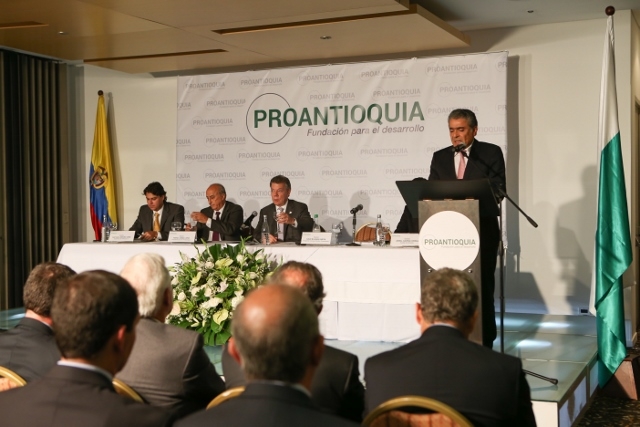 Señor Presidente de Colombia, Juan Manuel Santos Calderón; Señora Ministra de Comercio, Industria y Turismo, Cecilia Alvarez; Señor Gobernador de Antioquia (e), Santiago Londoño; Señor Alcalde de Medellín, Aníbal Gaviria Correa; Señor Rafael Aubad, Presidente de Proantioquia y Señores afiliados a esta entidad; Señores miembros de los equipos de gobierno de Medellín y Antioquia y demás amigos y asistentes el día de hoy.