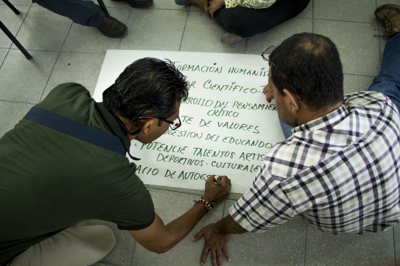 "La educación debe asentarse en la realidad del territorio y en cada una de sus particularidades", dijo Emilio Palacios. Opinión que la docente Ruby Bermudez comparte, pues ella considera que el territorio debe ser el escenario para una educación más oportuna.