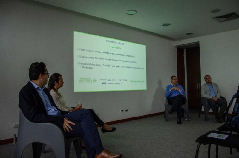 La conversación posterior a la presentación fue moderada por Nicolás Molina, quien planteó valiosas ideas para lo que sigue en la gestión de Antioquia Sostenible. Los invitados coincidieron en la necesidad de unificar el lenguaje, apuntando a acciones concretas y a una verdadera cooperación entre sectores. El diálogo aparece aquí como recurso fundamental para articular procesos y, según Carlos Andrés Monsalve, generar puntos de acuerdo desde la diferencia.