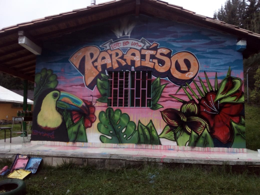 En la intervención también estuvo presente el artista Cristian Arboleda "Shiffo", quien realizó un taller de imaginarios con los habitantes de la vereda. El resultado, un mural en una de las paredes principales de la institución educativa donde se describió lo que para la comunidad representa dicho lugar: Un paraíso.