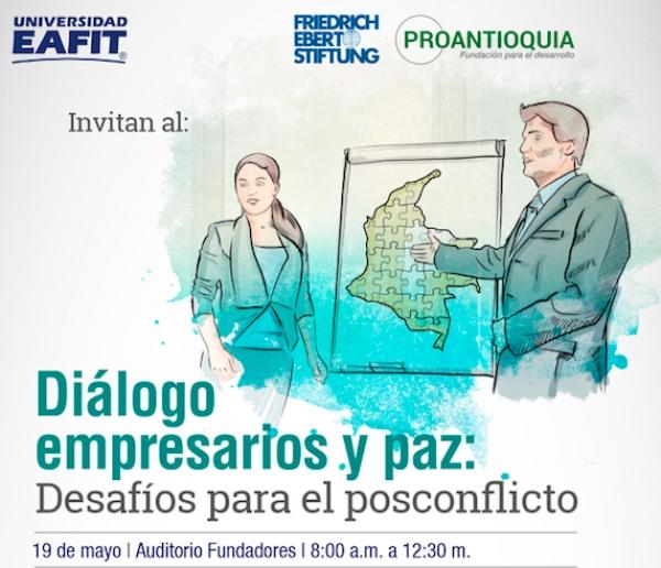 La cita será en el auditorio Fundadores de la Universidad Eafit, de 8 de la mañana a 12:30 de la tarde, con ingreso libre. Invitados internacionales con amplia experiencia en asuntos de paz, resolución de conflictos y transformación social, dialogarán con empresarios de nuestro país sobre el papel de las compañías en el posconflicto y los grandes retos del sector privado en la construcción de una sociedad en paz.