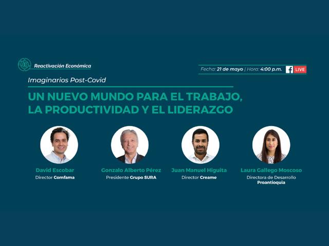 ¿Cuáles son los principales desafíos en el mercado laboral del futuro y las transformaciones que serán definitivas en la gestión del talento humano, el liderazgo en nuestras organizaciones y la cultura organizacional? Conversan Gonzalo Pérez, Presidente de Grupo Sura, David Escobar, Director de Comfama y Juan Manuel Higuita, Director de Creame con Laura Gallego, Directora de Desarrollo de Proantioquia.