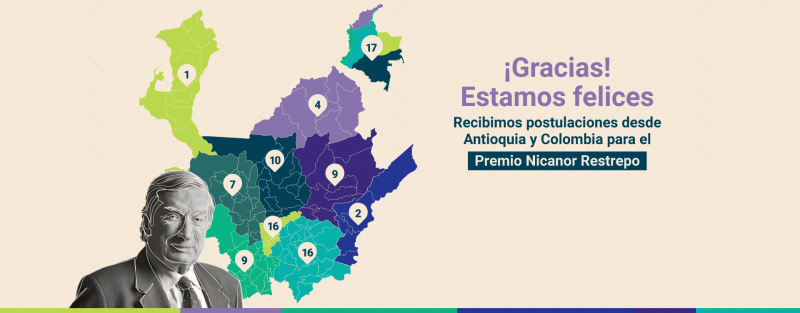Gracias por participar en la convocatoria del Premio Nicanor Restrepo Santamaría 2022. Este año recibimos 23 postulaciones en investigación social y cerca de 70 experiencias en educación. Nos alegra contarles que todas las subregiones de Antioquia participaron y que 12 departamentos de Colombia también respondieron a nuestra convocatoria.