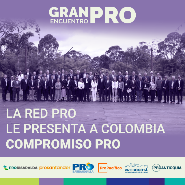 Estamos felices de haber sido anfitriones del Gran Encuentro Pro que convocó a la Red PRO, una alianza entre Probogotá Región, Propacífico, Prorisaralda, Prosantader y Proantioquia. El Gran Encuentro Pro, llevado a cabo el pasado jueves 5 de mayo, reunió a líderes empresariales del país interesados en los principales desafíos que tenemos en Colombia. El nacimiento de Compromiso Pro fue el resultado de este encuentro y será el sello con el que empresarios afiliados a la Red PRO trabajarán de manera conjunta en tema sociales y económicos que generen impacto en las regiones y fomenten así el desarrollo del país.